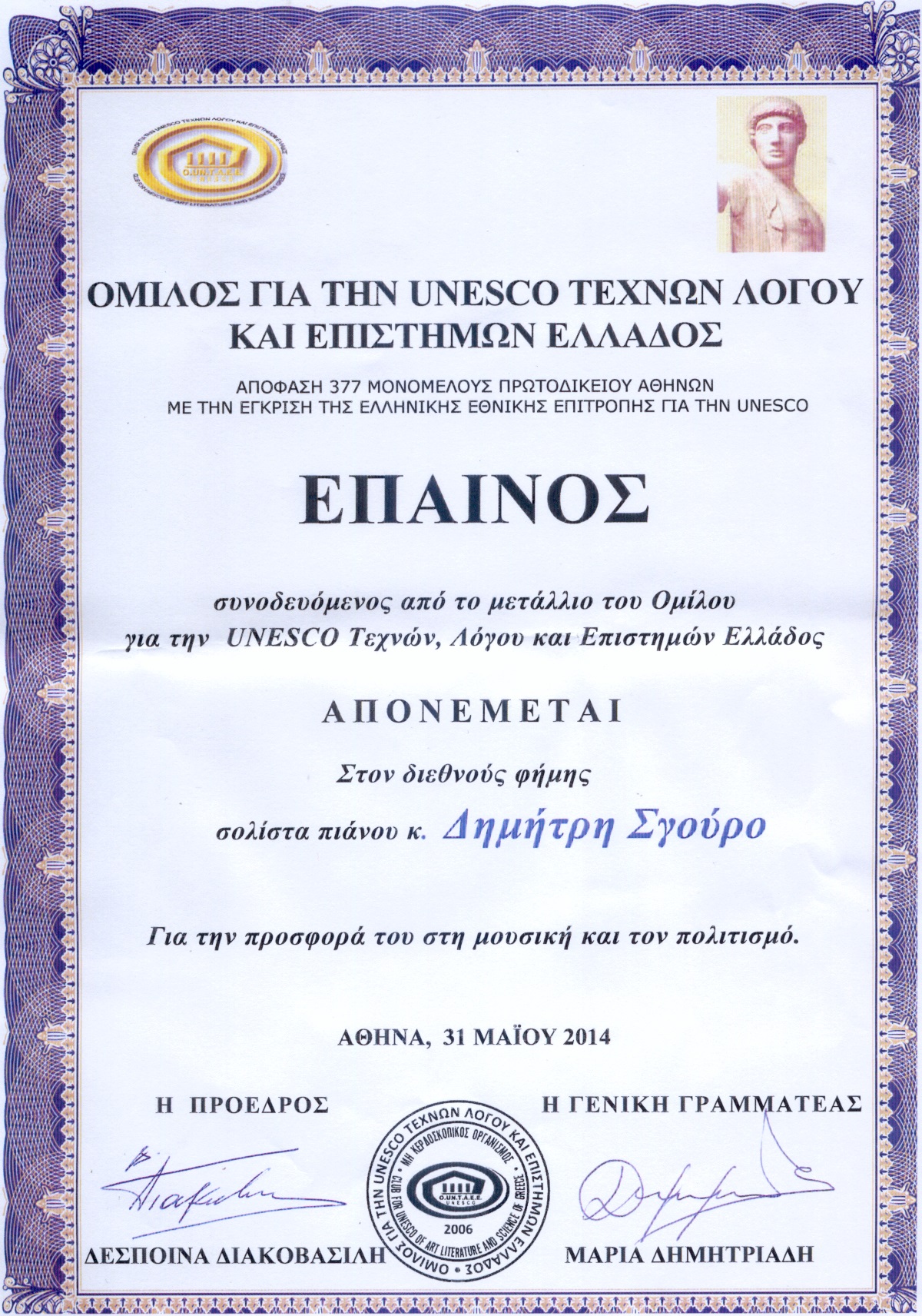 presented to Dimitris Sgouros by UNESCO in May 2014